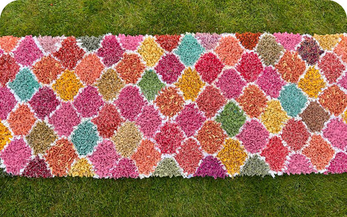 If designing from scratch feels like too much, our pre-printed rag rug hessian can be a great option, taking the pressure off planning and allowing you to focus on the enjoyment of making. With the design already marked out, you can relax into the process, experiment with colour and texture, and let your creativity flow without overthinking.